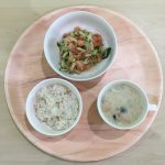 給食:麦ごはん・魚のマリネ・きのこと豆乳のコーンスープ【約274Kcal】