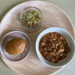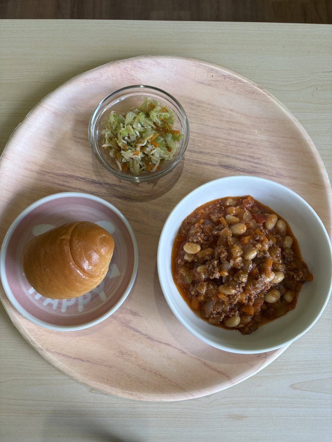 給食:ロールパン・なすのミートソース煮・じゃこサラダ【約278Kcal】