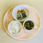 給食:麦ごはん・魚の磯辺揚げ・焼きかぼちゃ・小松菜と豆腐の清汁【約253Kcal】