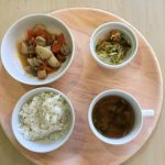 給食:麦ごはん・清汁・鶏肉とさといものうま煮・塩昆布炒め【約240Kcal】