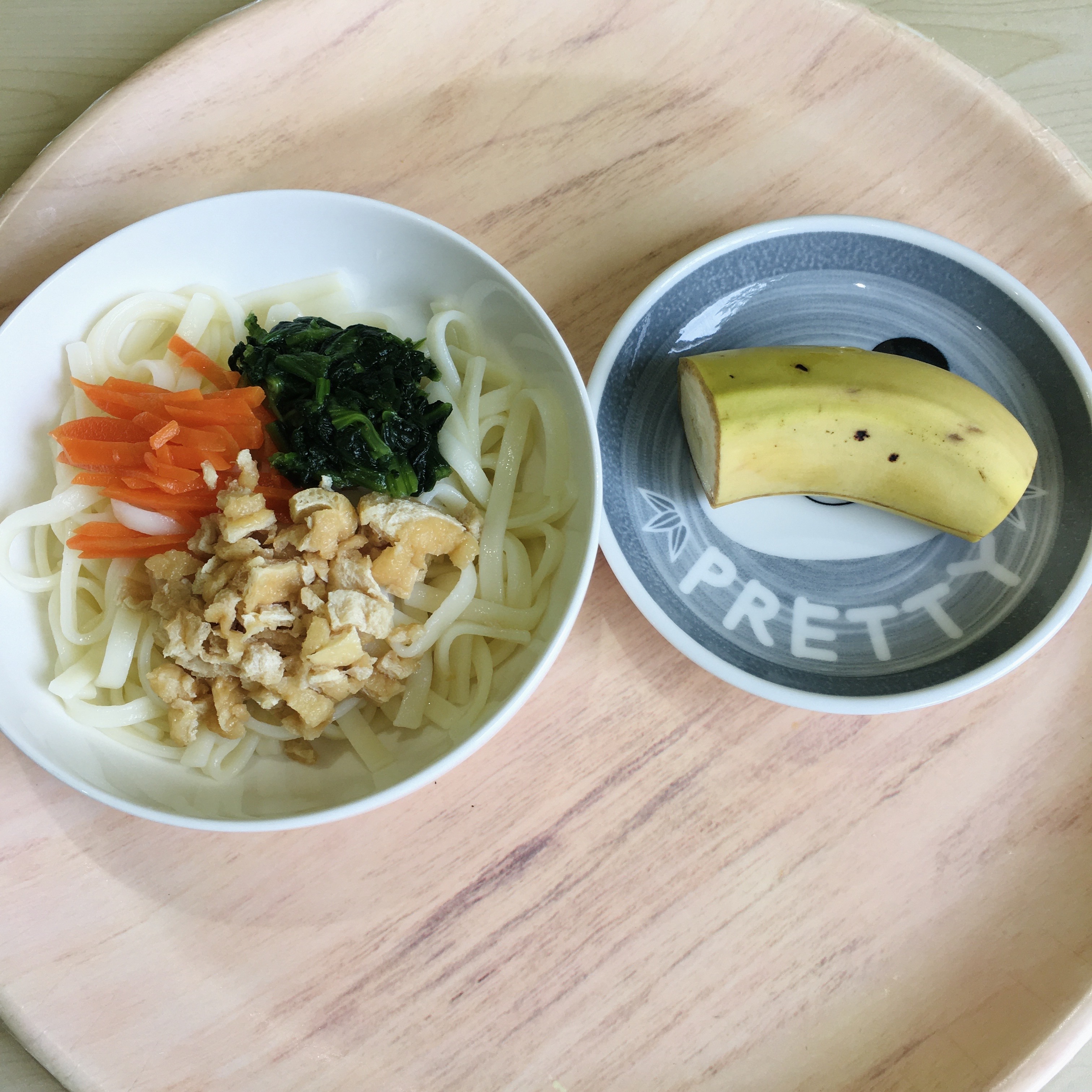 🥄今日の給食・おやつ🥄10/25(土) 2025年10月25日 0 あかりのこ保育園, あかりのこ堅粕園, あかりのこ香住ヶ丘園 推定エネルギー必要量(1~2歳児) 男:950Kcal/日 女:900Kcal/日 給食:きつねうどん・バナナ【約205Kcal】 おやつ:豆乳・きのこごはん【約176Kcal】 本日の塩分目安量:約2.2g