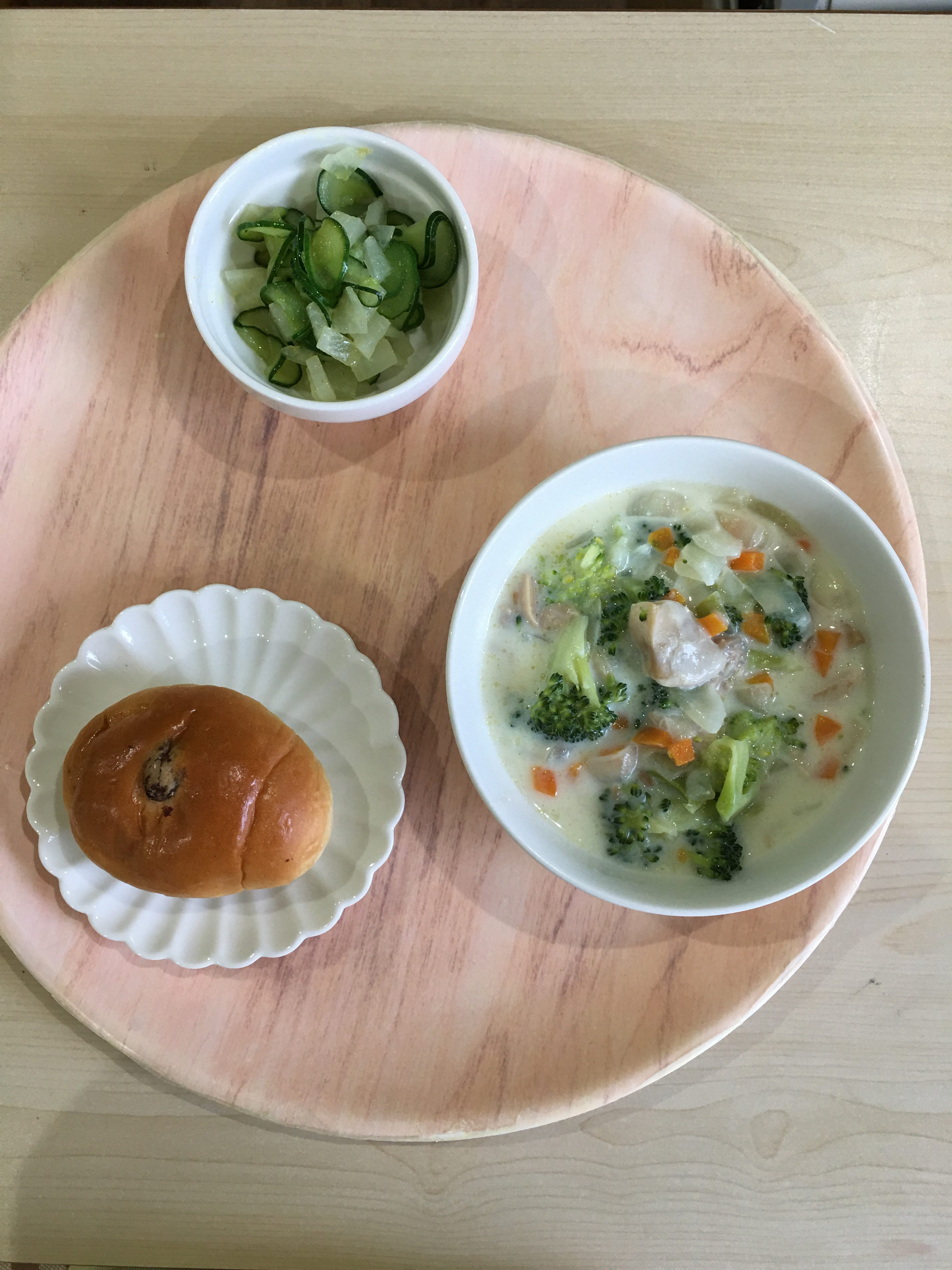給食:ぶどうパン・鶏肉とブロッコリーのクリーム煮【約274Kcal】