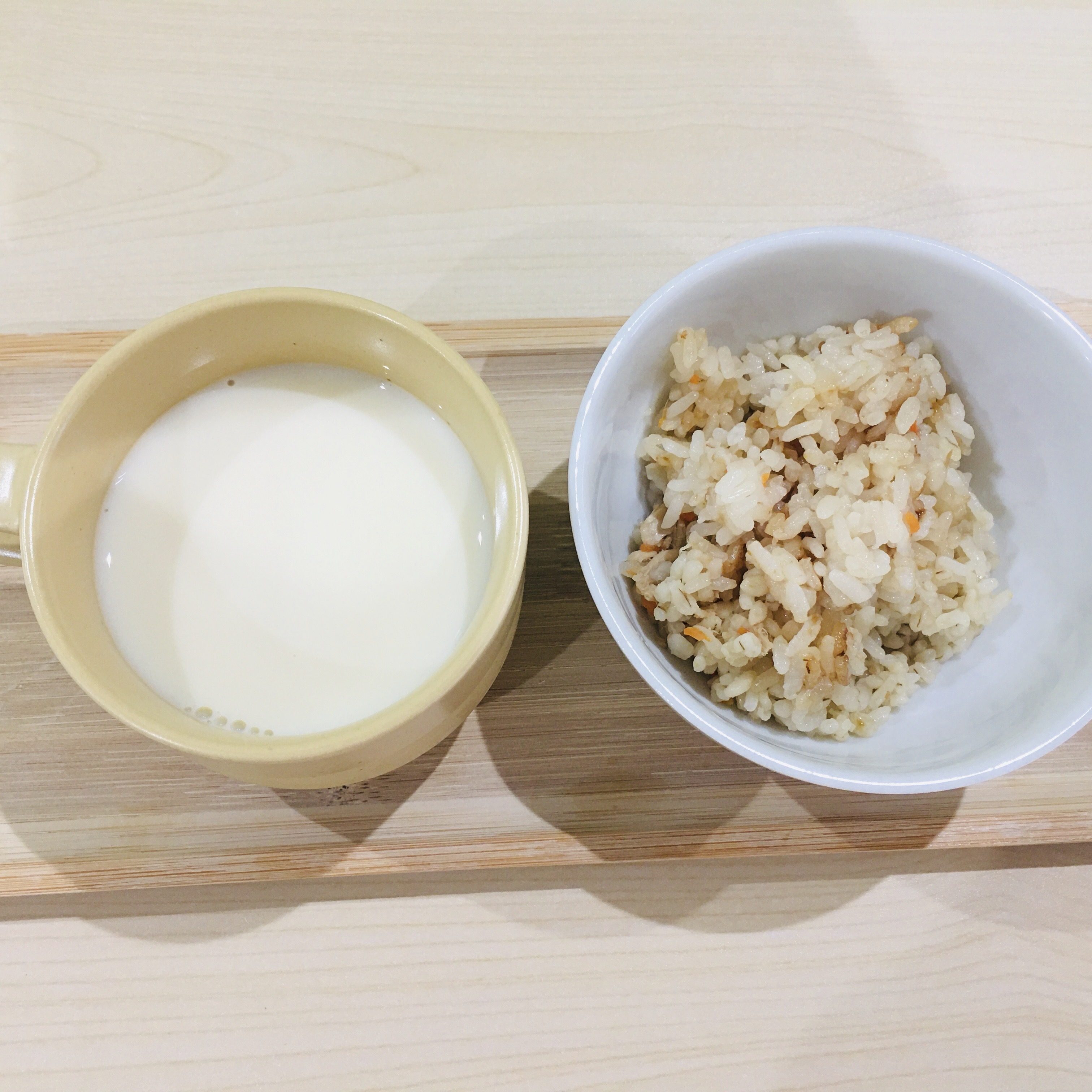 おやつ:豆乳・ツナごはん【約165Kcal】