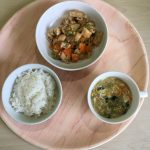 🥄今日の給食・おやつ🥄1/5(月) 2026年1月5日 0 あかりのこ保育園, あかりのこ堅粕園, あかりのこ香住ヶ丘園 推定エネルギー必要量(1~2歳児) 男:950Kcal/日 女:900Kcal/日 給食:麦ごはん・がんもどきの中華風うま煮【約271Kcal】 おやつ:牛乳・オレンジ・のり塩バターいももち【約125Kcal】 本日の塩分目安量:約1.8g