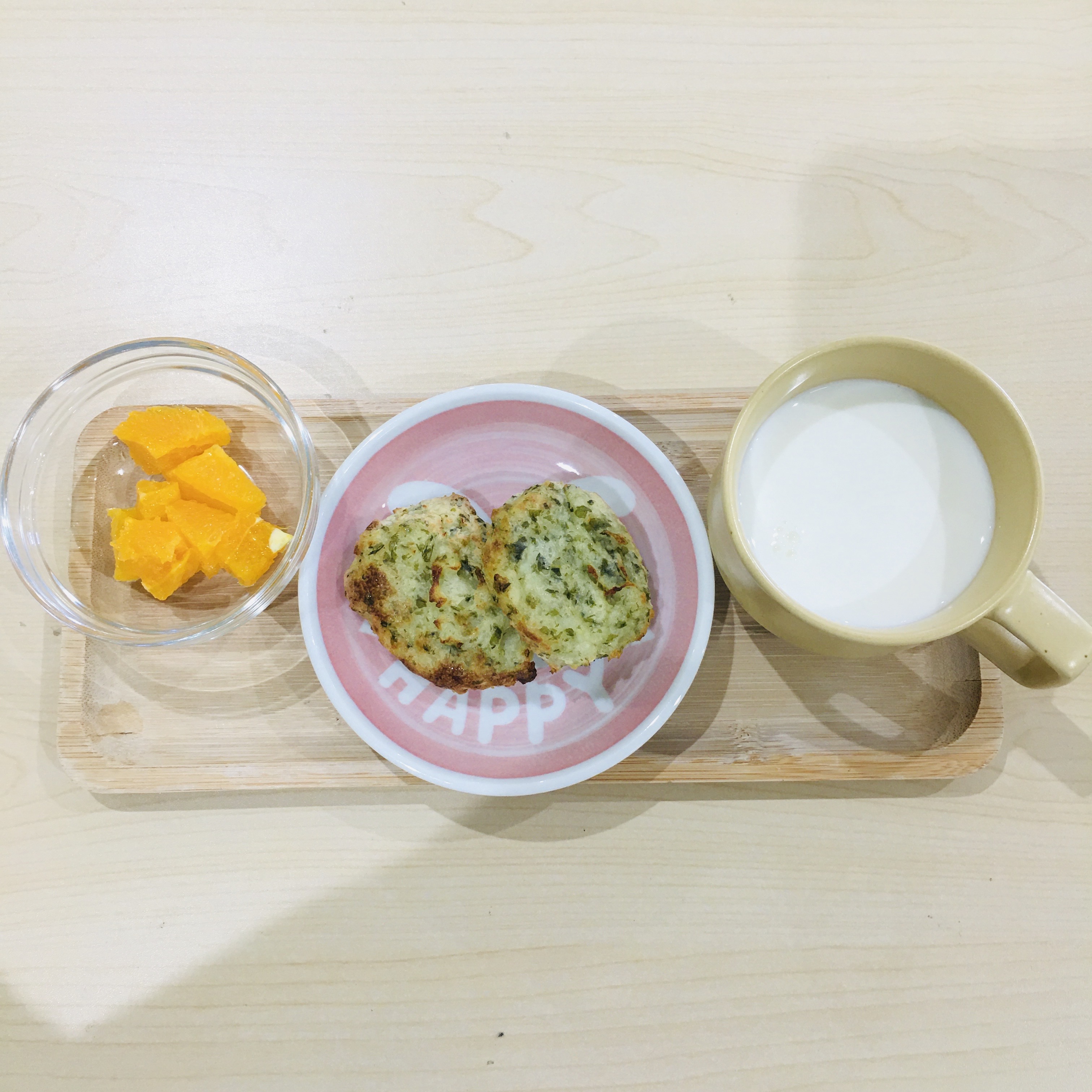 おやつ:牛乳・オレンジ・のり塩バターいももち【約125Kcal】