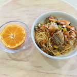 🥄今日の給食・おやつ🥄 2/21(土) 2026年2月21日 0 あかりのこ保育園, あかりのこ堅粕園, あかりのこ香住ヶ丘園 推定エネルギー必要量(1~2歳児) 男:950Kcal/日 女:900Kcal/日 給食:スパゲティナポリタン・みかん【約224Kcal】 おやつ:豆乳・きな粉レーズンマフィン【約203Kcal】 本日の塩分目安量:約1.2g