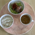 給食:麦ごはん・ミートローフ・レタス・野菜スープ【約281Kcal】
